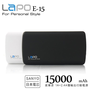 LAPO【LAPO】15000mAh皮革漆3.4A雙輸出行動電源(E-15)-黑