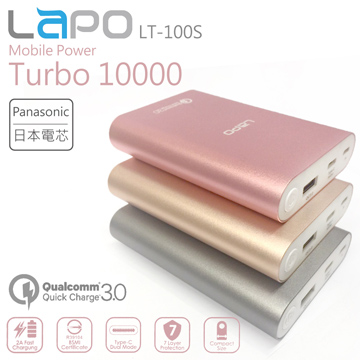LAPO【LAPO】10000mAh支援QC 3.0/Type-C快充 金屬合金行動電源 (LT-100S)